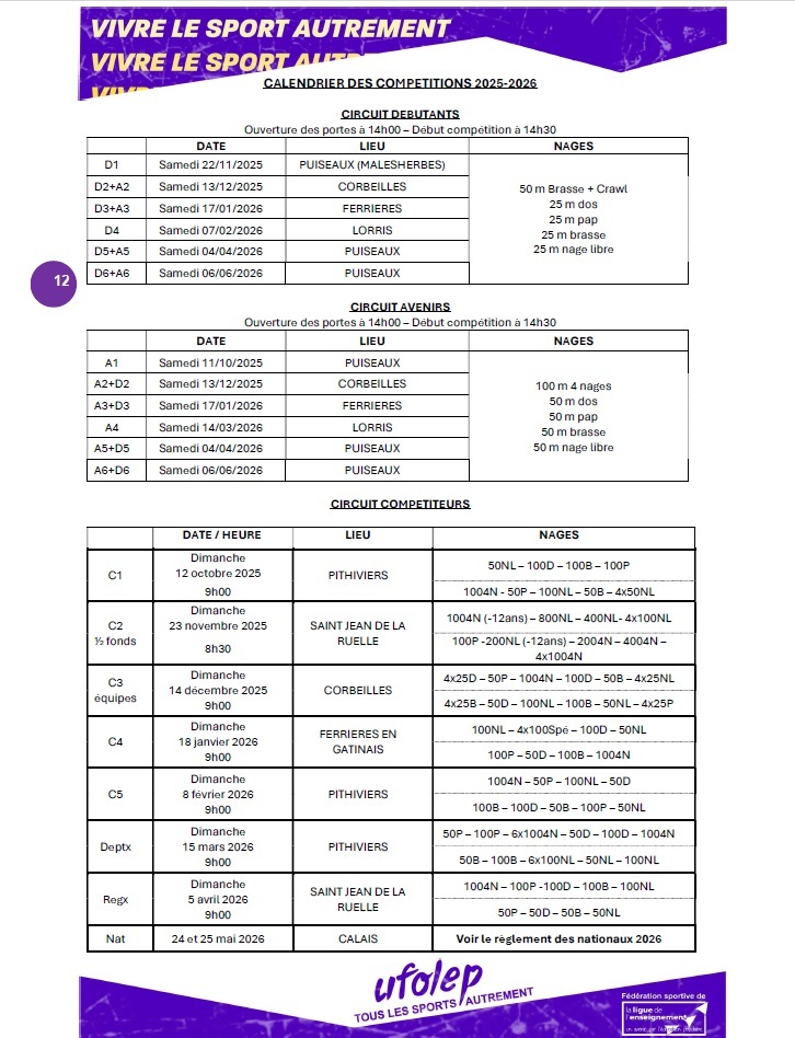 Attention : Calendrier des compétitions 2025/2026 modifié le 14/11/2025