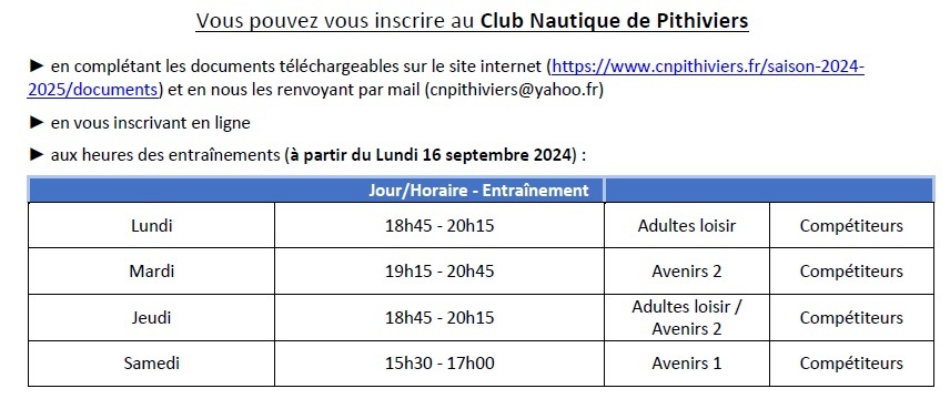 Vous pouvez nous envoyer tous vos documents complétés par mail à cnpithiviers@yahoo.fr