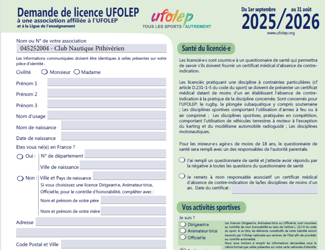 - Le formulaire de demande de licence UFOLEP 2025-2026 est disponible en téléchargement pour les nouveaux adhérents